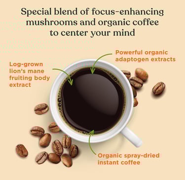 Four Sigmatic Organic Mushroom Coffee | Arabica Instant Coffee Singles with Lion's Mane, Chaga, and Rhodiola | Mushroom Coffee Instant Mix for Better Focus and Immune Support, found on Amazon